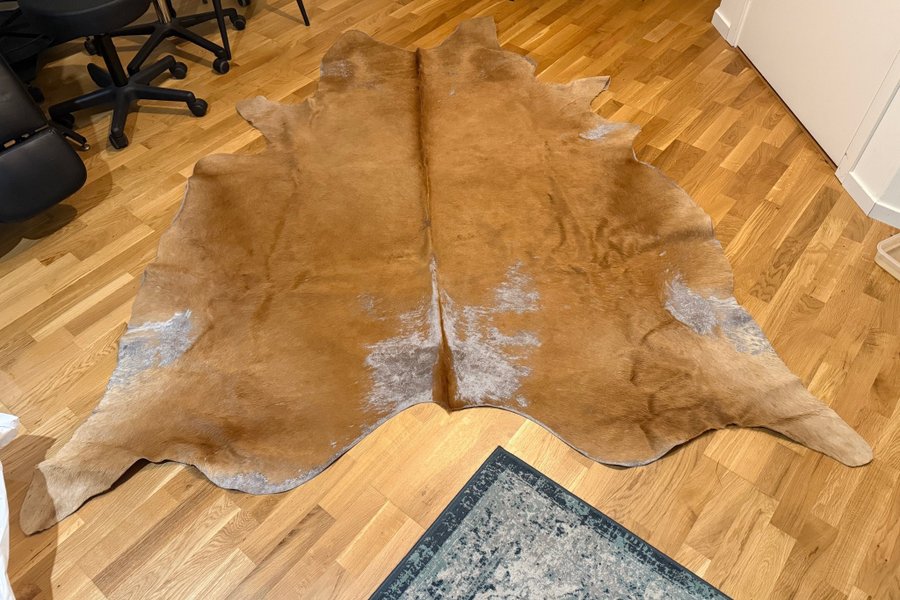 Ett vackert koskinn som passar perfekt som en dekorativ detalj i hemmet.