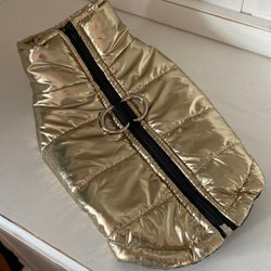 Hundjacka. Alldeles ny , gul/svart, Rygglängd 40 , bröstomfång 30 ryggslut 40 Material vattentålig polyester, fleecefoder,