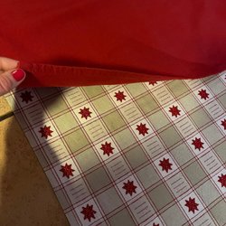 En barn tröja som är omsydd för hund. Gjort ett hål i ryggen för kopplet/sele och sen sytt med symaskin sicksack lite lätt runt hålet.