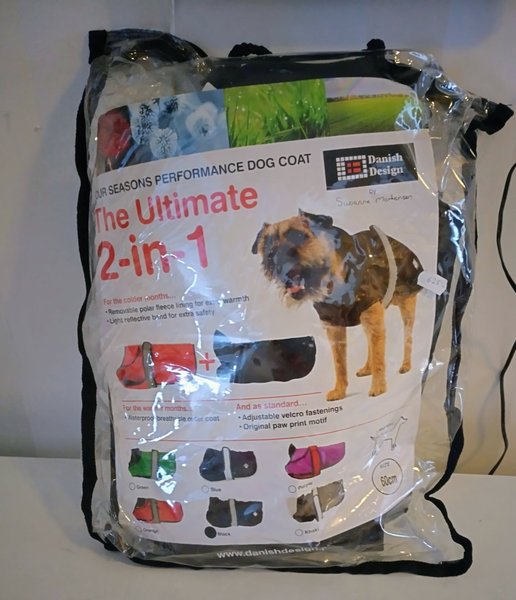 Hundtäcke 2 i ett, svart. Vattentät, storlek ryggmått 60 cm. Märke Danish design.