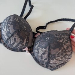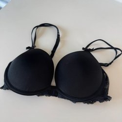 Elegant sort bh med blonde detaljer. Bh'en har justerbare stropper og lukning bagpå.