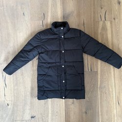 Svartglittrig byxdress stl 146 från Kappahl med långa ärmar och v-ringning. Jumpsuiten har resår i midjan och vida ben. Perfekt för vinterns alla festligheter. Byxdressen är i fint skick sånär som ett par maskor, se bilder. Dessa syns knappt på helheten men när man granskar i närbild. Stretchigt material för komfort.