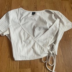 Ny veckad topp i fin ljusgrön från Shein i strl S med hög hals