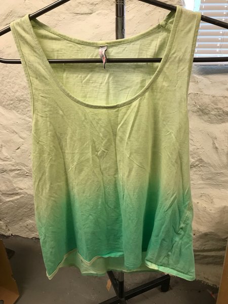 Ärmlös topp i en ljusgrön nyans som gradvis övergår till en mörkare grön ton nedtill. Toppen har en rund halsringning och en avslappnad passform.strl M