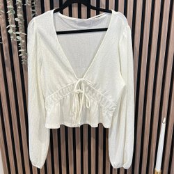 Vit långärmad topp med rundad halsringning. Toppen har en enkel och stilren design som gör den mångsidig för olika tillfällen. Den långärmade modellen passar bra för svalare dagar eller som ett basplagg under andra plagg.