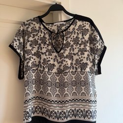 Ærmeløs top i en flot grå farve med en dekorativ V-udskæring med perler og pailletter. Toppen har en rå kant forneden, der giver et afslappet udtryk.