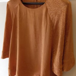 Snygg orange topp från Yessica med spetsdetaljer på axlarna och volangärmar. Perfekt för en färgglad look.