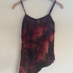 Röd, ärmlös topp med volangdetaljer runt halsringningen. Strl L. Använd endast ett par gånger.