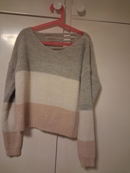 Grå, vit, rosa tröja