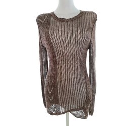 VINTAGE Lång tröjtunika Burgunder 38 Lång ärm Rund urringning Tunn stickning