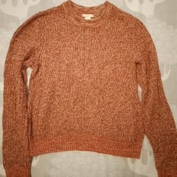 Tröja orange i storlek M (liten M) i fleece, mycket använd och det finns noppor här och var över hela tröjan, finns en liten dragkedja upptill för att stänga kragen, okej skick.