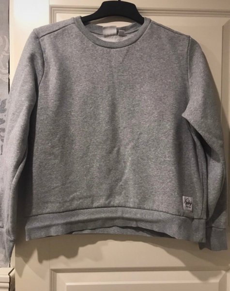 Grå sweatshirt med rund halsringning och muddar vid ärmslut och nederkant. En liten etikett finns nedtill på tröjan.strl M från Andy