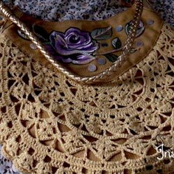 Långärmad tröja med polokrage och ett blommigt mönster i gröna och bruna nyanser. Tröjan har utsvängda ärmar och en svart spetskant nedtill.