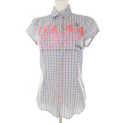 TERRANOVA Knäppt skjortblus för Dam Rutig Blå M Kort ärm Bomull 100%