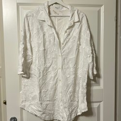 Vit skjorta med korta ärmar och två fickor framtill. Skjortan har en klassisk krage och knäpps med knappar.