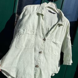 Linneskjorta med långa ärmar och knäppning framtill.