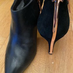 Perfekt för att skapa en sofistikerad och trendig look. Skapades av en designer i enda exemplar. Midja L 35x2. Längd innerbenets L 66 cm. Används ett par gånger vid högtid.