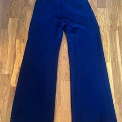 Blå byxor med vita prickar. Byxorna har en avslappnad passform och resår i midjan för extra komfort. Perfekta för både vardag och mer uppklädda tillfällen.