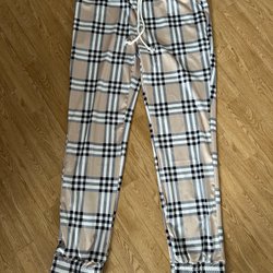 Byxor med resår och dragsko i midjan. Två fickor fram och två bak. Uppvikta benslut.