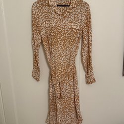 Ett par vida byxor med leopardmönster. Byxorna har en hög midja och ett avslappnat fall. Storlek 34 men passar en normal S också då de är stretchiga. Från new look