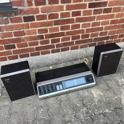 Designad för att ge stereoljud med tonkontroller och olika ingångar/utgångar för att ansluta externa högtalare.