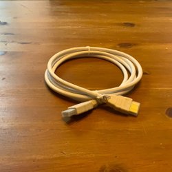 Svart HDMI-kabel för anslutning av olika enheter. Kabeln är lämplig för att överföra ljud- och bildsignaler mellan kompatibla apparater.