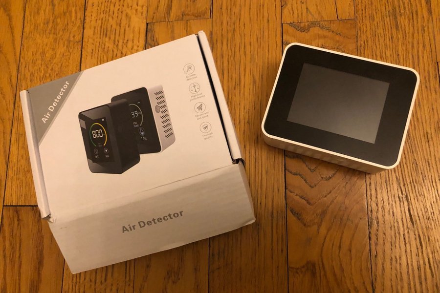 Luftdetektor för inomhusbruk. Mäter koldioxid (CO2), temperatur och luftfuktighet. Enheten har en tydlig display och är enkel att använda.