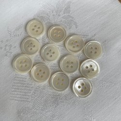 7 st pärlemorknappar, 14 mm, fyra hål. Samfraktar naturligtvis om du köper flera objekt!