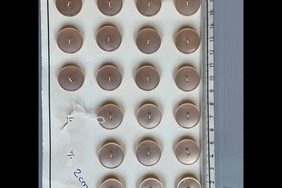 21 knappar i pastell rosa/orange. Ca 2 cm. Mått enligt bild.