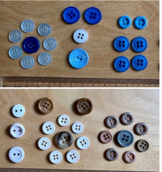 Knappar, enl bild. Div färger o storlekar. Nyskick