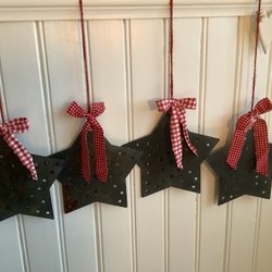 Julrött kantband i olika längder. Fyra längder är 52 cm vardera och två längder är 110 cm vardera.