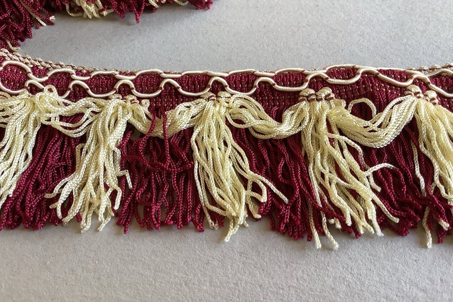 Frans i vinrött och cremefärg 5 m x 6 cm inkl bård och frans
