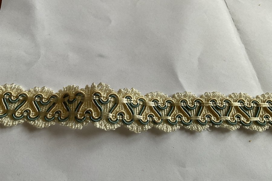 Band i offwhite och grönt 11,55 m x 2 cm