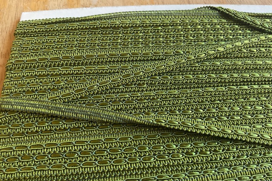 Band i grönt drygt 14 m x 1 cm något mörkare