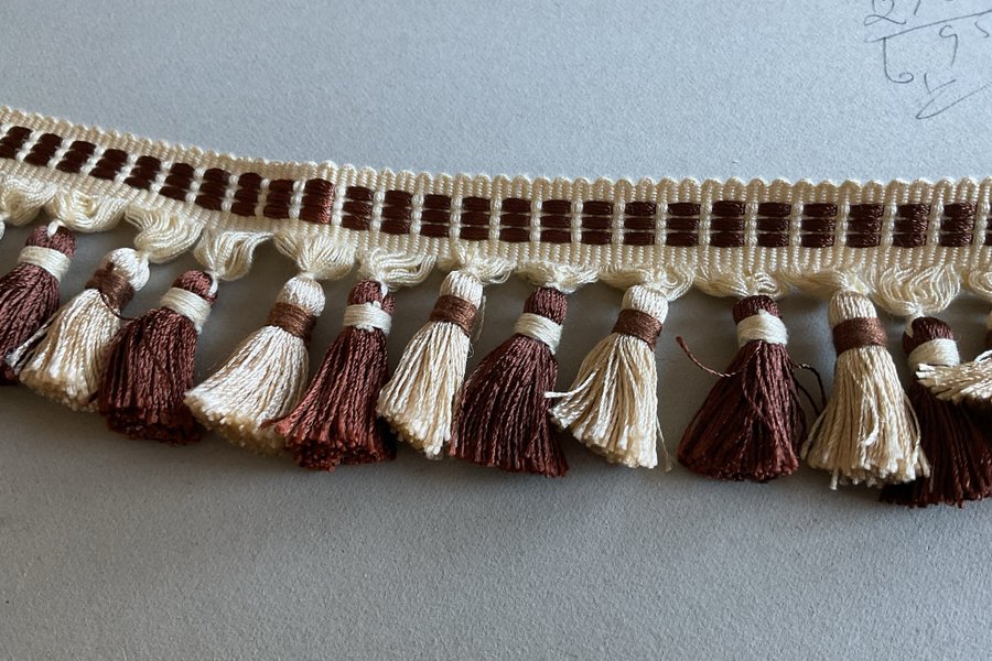 Tofsfrans i beige och brunt 7,20 m x 6 cm