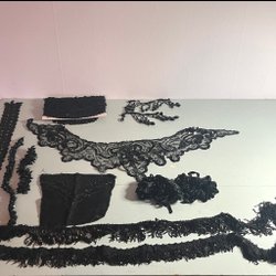 Massor av antika spetsar. Har inte mätt alla rullar/kartongbitar men minst 20m totalt. Defekter kan förekomma.