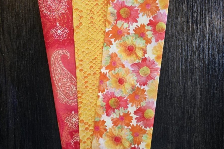 3 olika ark med dekortryckt papper från Decopatch. Pappret är tunt och flexibelt och kan klistras fast med lim på de flesta material såsom papp, plast, keramik, trä och lera. Passar utmärkt för decoupage men även för olika typer av collage. Varje ark är 30x40cm