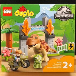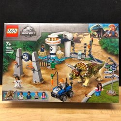- Leksaksdinosaurie och 4 minifigurer – En rörlig Triceratopsfigur, Claire Dearing, Franklin Webb och 2 säkerhetsvakter, plus en bedövningspistol och en morotsdel för fantasifulla lekar