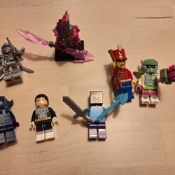 Säljer ett Lego Ninjago set med en robot, en motorcykel och tillhörande figurer. Perfekt för lek och samling. Motorcykeln är ej komplett. Samt så saknas det en minifigur till setet. Den stora figuren saknar sin hammare. Annars bra skick.