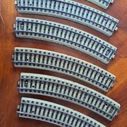 Detta parti innehåller en samling modelltågräls. Rälsen består av både raka och böjda sektioner till en stor oval. 12 st 5100 och 12st 5106. Alla med färgrester efter skrotad anläggning. Skickar med 4 extra räls ifall något är skadat.