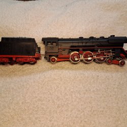 Röd modell av ett lok. Märkt med DB 103 118-2