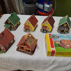 3 st 50-tals personvagnar med omlackade tak, två st godsvagnar samt två st små personvagnar enl. bilder