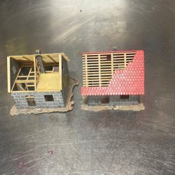 Ett charmigt miniatyrhus med rött tak. Perfekt för samlare eller som en dekorativ detalj i hemmet.