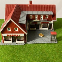 Ett modellhus i skala. Perfekt för modelljärnvägen eller som en del av en samling.