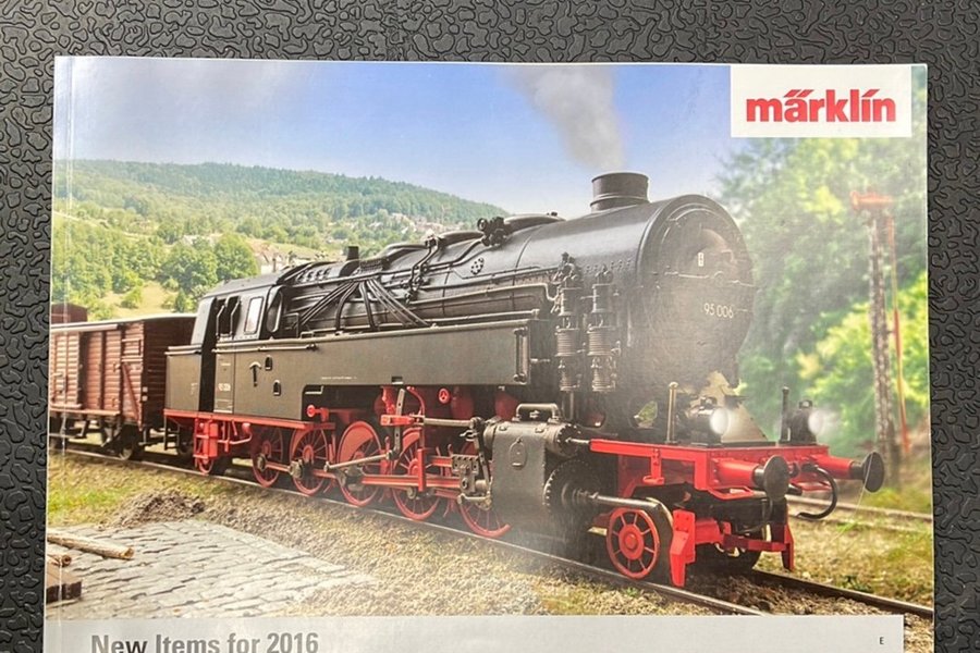 Katalog från Märklin med nya produkter för 2016. Framsidan visar ett ånglok.