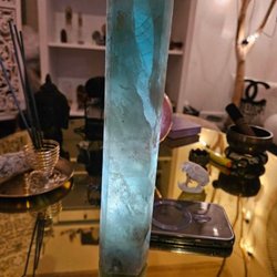 Fin måne i blomsteragat med tillhörande ställ.
