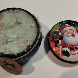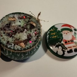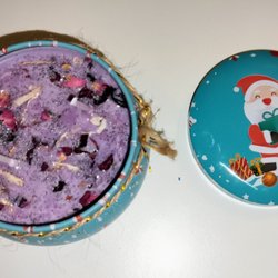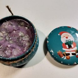 Ljuset är tillverkat i en värmetålig glasburk med korklock. Det är tillsatt naturlig eterisk olja för doft och speciell färg för ljustillverkning, och ljuset är dekorerat med glitter. Detta ljus har doften av GRAPE / GRAPEFRUKT. Ljuset är 6 cm högt och 5,5 cm i diameter. Handgjort och 100% unikt.