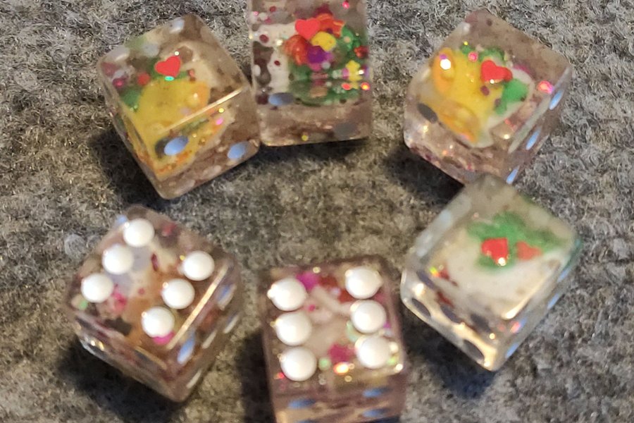 Set med tärningar med jul-tema. Perfekt för spel eller som en unik dekoration.