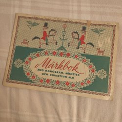 Fin märkbok med mönster för korsstygn, väldigt många fina mönster, förslag på monogram och kant mönster. 16 sidor.