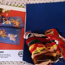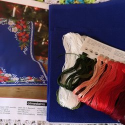 Ett komplett broderi (ingen ram) till denna jättesöta tavla med en blomkrans i gult och blått...